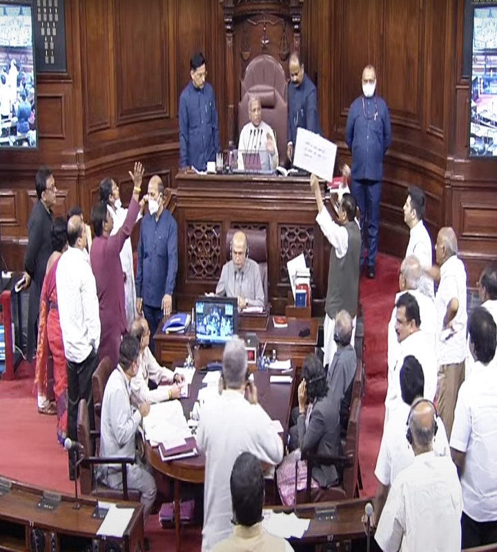 मानसून सत्र शुरू होने के बाद से महंगाई, बढ़ी हुई जीएसटी दरों और अन्य मुद्दों पर चर्चा की मांग को लेकर विपक्षी सदस्य सदन में लगातार विरोध प्रदर्शन कर रहे हैं।