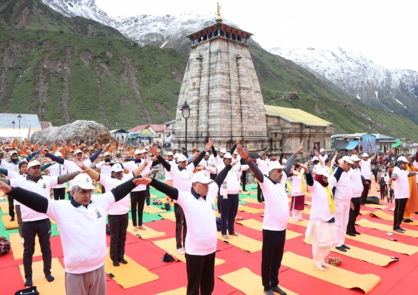 रुद्रप्रयाग, 21 जून (यूआईटीवी/आईएएनएस)| अंतरराष्ट्रीय योग दिवस के मौके पर केदारनाथ धाम में पुरोहितों सहित तीर्थ यात्रियों ने योग किया। केंद्र सरकार ने अंतरराष्ट्रीय योग दिवस पर देश भर में 75 स्थानों में होने वाले योग कार्यक्रम के लिए केदारनाथ को भी चयनित किया है। इस दौरान करीब 500 श्रद्धालुओं ने योगाभ्यास किया। कड़ाके की ठंड में था। वहीं राज्यभर में कई कार्यक्रम आयोजित किए गए। योग दिवस के लिए यात्रियों का उत्साह देखते ही बन रहा। कार्यक्रम के मुख्य अतिथि केन्द्रीय राज्य मंत्री डा. संजीव कुमार बालियान, सचिव मत्स्य पालन संजीव कुमार, अपर सचिव मत्स्य पालन भारत सरकार सागर मेहरा, ज्वाइंट सेक्रेटरी शंकर लक्ष्मण, सचिव पशुपालन डा. वीवीआरसी पुरुषोतम, जिलाधिकारी मयूर दीक्षित, निदेशक मत्स्य पालन डा. नियति जोशी, उप सचिव डा. एसके झा, अपर निदेशक मत्स्य पालन गुनमया पात्रा समेत कई उच्च अधिकारी मौजूद रहे।