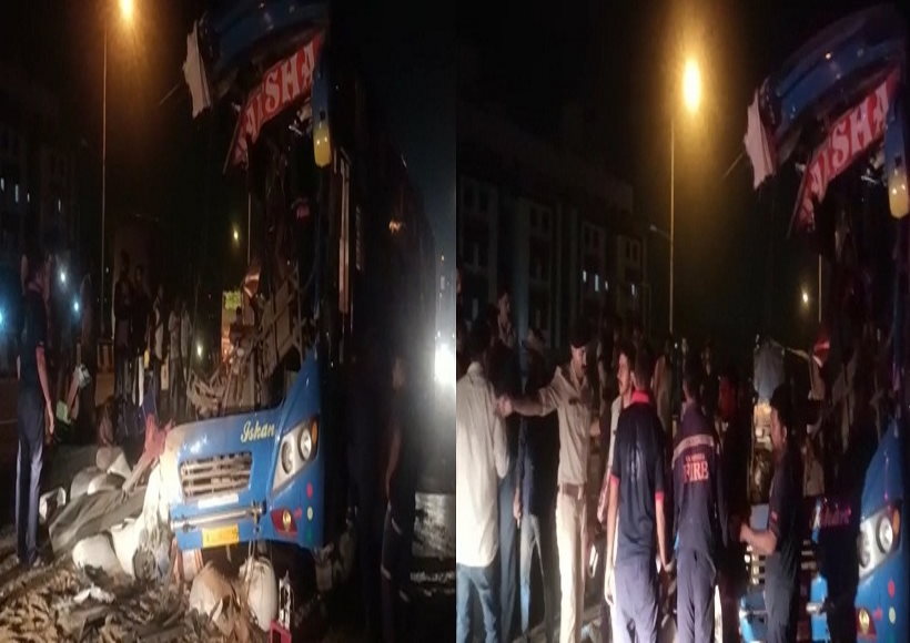 सहायक पुलिस आयुक्त जी डी पलसाना ने कहा, मुंबई जा रही यात्री बस सुबह 4 बजे ओवरटेक करने की कोशिश में एक कंटेनर ट्रक से टकरा गई।