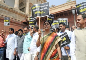 विजय चौक पर रोके जाने से नाराज सांसदों ने वहीं पर नारेबाजी शुरू कर दी। कांग्रेस अध्यक्ष मल्लिकार्जुन खरगे ने कहा, 200 सांसदों को रोकने के लिए 2000 पुलिस वाले लगाए गए हैं।