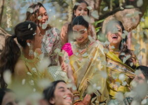 पहली तस्वीर में वह मुस्कुराते हुए दिख रही हैं और चारों तरफ उनकी दोस्त हैं। दूसरी तस्वीर में माना शेट्टी रस्म के तहत उनकी आरती करती हुई नजर आ रही हैं।
