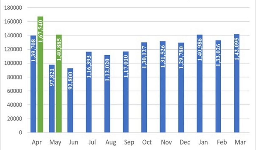 नयी दिल्ली, 1 जून (यूआईटीवी/आईएएनएस)| देश का वस्तु एवं सेवा कर (जीएसटी) संग्रह मई में 1,40,885 करोड़ रुपये रहा। यह लगातार तीसरा माह रहा, जब…