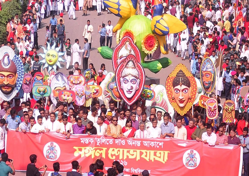 ढाका विश्वविद्यालय के ललित कला संकाय के शिक्षकों और छात्रों द्वारा आयोजित जुलूस को बांग्लादेशी लोगों की धर्मनिरपेक्ष पहचान की अभिव्यक्ति और एकता को बढ़ावा देने के तरीके के रूप में माना जाता है।