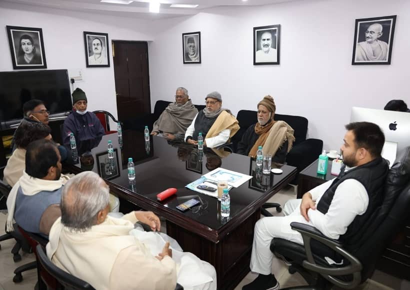 पटना, 29 जनवरी (युआईटीवी/आईएएनएस)| किसान आंदोलन के समर्थन में महागठबंधन में शामिल दलों की राज्य भर में शनिवार को बनने वाली मानव श्रृंखला को लेकर शुक्रवार को बैठक हुई। इस बैठक के बाद राजद नेता तेजस्वी यादव ने कहा कि किसान आंदोलन के साथ महागठबंधन के नेता पूरी मजबूती के साथ खड़े हैं। उन्होंने कहा कि सरकार आज किसान और जवान को ‘फंडदाताओं’ के लिए लड़वा रही है। बिहार विधानसभा में विपक्ष के नेता तेजस्वी यादव ने मानव श्रृंखला में शामिल होने के लिए बिहार के लोगों से अपील करते हुए कहा कि जिस तरीके से हरियाणा, पंजाब व पश्चिमी उत्तर प्रदेश के किसान इस आंदोलन में शामिल हो रहे हैं, उसी तरह से बिहार के किसान आगे आएं।