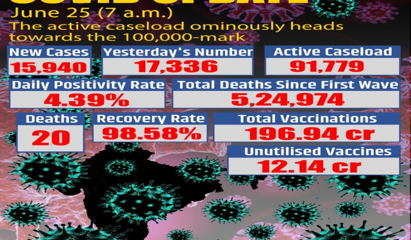 View More भारत में ताजा कोविड मामलों में गिरावट, 15,940 नए मामले, 20 मौतें