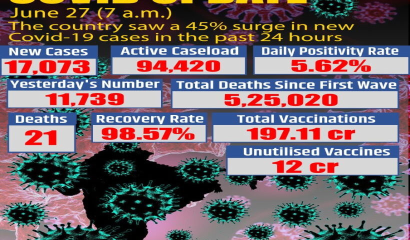 नई दिल्ली, 27 जून (युआईटीवी/आईएएनएस)- भारत में सोमवार को कोविड-19 के 17,073 मामले दर्ज किए गए, जबकि रविवार को 11,739 मामले आए थे। इसे मामलों…