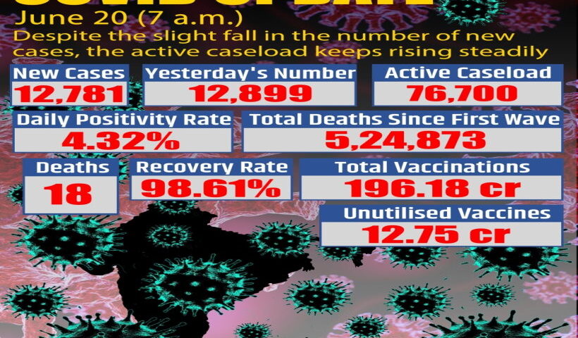 View More लखनऊ में कोरोना के सक्रिय मामले 500 से ज्यादाभारत में कोविड-19 के 12,781 नए मामले, 18 मौतें