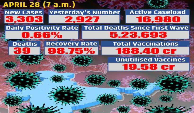 View More भारत में कोरोना के 3,303 नए मामले, 39 की मौत