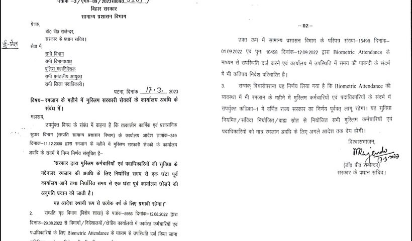 पटना, 18 मार्च (युआईटीवी/आईएएनएस)| एआईएमआईएम के प्रमुख और सांसद असदुद्दीन ओवैसी के सीमांचल दौरे के बीच नीतीश कुमार की सरकार ने सरकारी कर्मचारियों को रमजान…