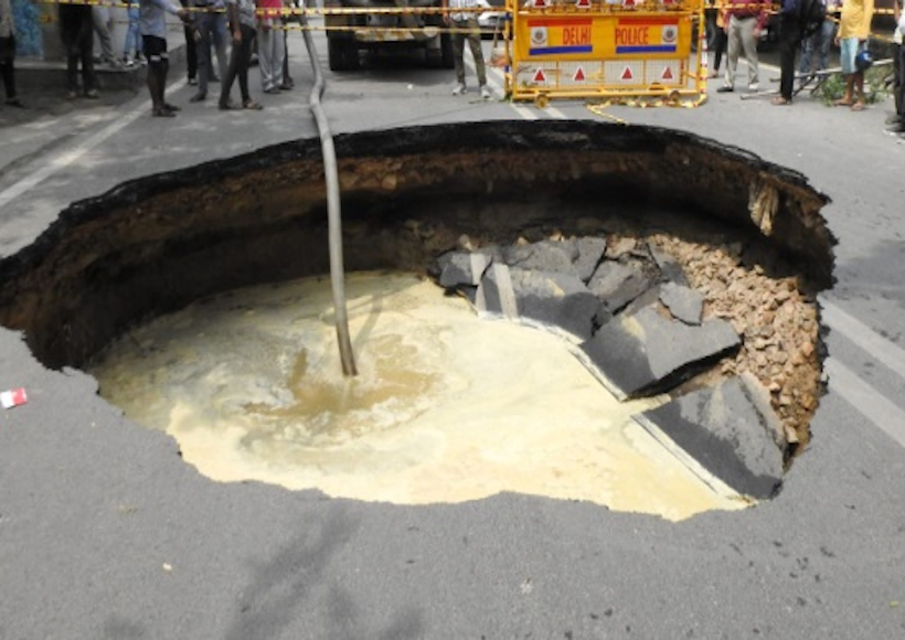 सड़क धंसने की घटना राष्ट्रीय राजधानी के कुछ हिस्सों में मंगलवार को हुई हल्की बारिश के बाद हुई है।