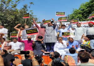 दिल्ली शराब घोटाले के विरुद्ध भाजपा ने आम आदमी पार्टी कार्यालय पर किया प्रदर्शन