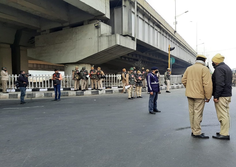 उन्होंने सुरक्षा में खड़े पुलिसकर्मियों को गणतंत्र दिवस की बधाई दी और किसानों को संयम बरतने को भी कहा।