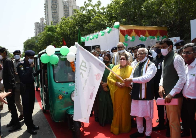 गुरुग्राम, 16 अगस्त (युआईटीवी/आईएएनएस)| हरियाणा के मुख्यमंत्री मनोहर लाल खट्टर ने सोमवार को सेक्टर-28 के गैलेरिया मार्केट क्षेत्र में 600 ई-ऑटोरिक्शा को हरी झंडी दिखाकर गुरुग्राम में पहली इलेक्ट्रिक थ्री-व्हीलर इकोसिस्टम परियोजना का शुभारंभ किया। खट्टर ने उद्घाटन के दौरान कहा कि ‘परिवर्तन’ परियोजना के तहत, गुरुग्राम और हरियाणा के अन्य महानगरों में 5,000 डीजल तिपहिया वाहनों को बदला जाएगा।