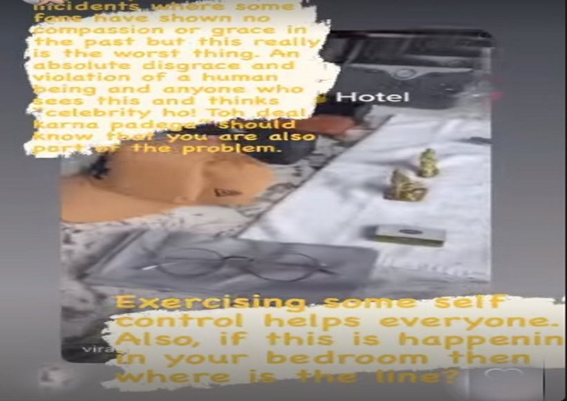 उन्होंने आगे कहा, अगर मैं अपने होटल के कमरे को गोपनीय तरीके से नहीं रख सकता, तो मैं किसी भी व्यक्तिगत स्थान की गोपनीयता पर कैसे विश्वास कर सकता हूं। कृपया लोगों की निजता का सम्मान करें और उन्हें मनोरंजन की वस्तु न समझें।