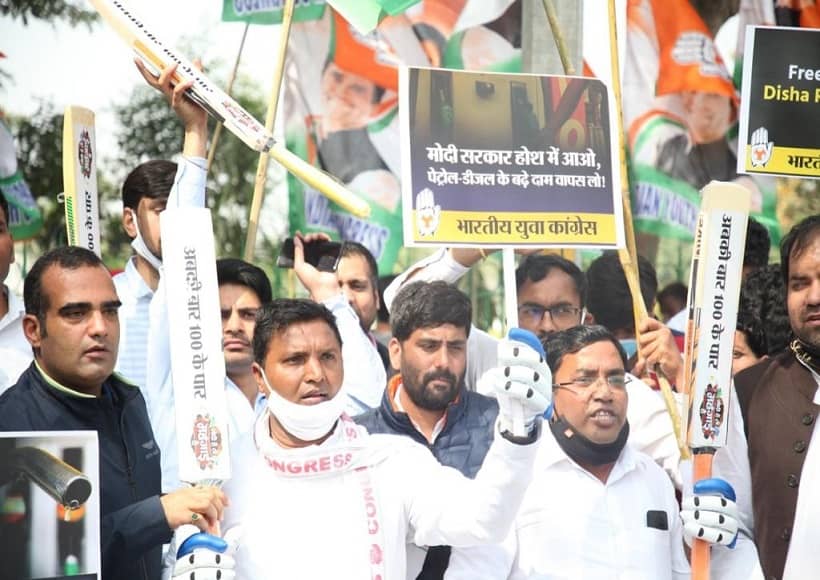 बढ़ती मंहगाई और दिशा रवि की गिरफ्तारी के खिलाफ भारतीय युवा कांग्रेस का विरोध प्रदर्शन
