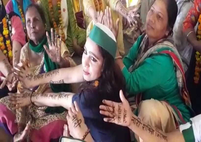 “आंदोलन में मौजूद महिलाओं ने आज अपने हाथों पर इंकलाबी मेहंदी लगाकर अपने हक की आवाज उठाने की कोशिश की है। महिलाओं ने हाथों पर मेहंदी से किसानों की एकता और आंदोलन के इंकलाबी नारे लिखे हैं। आज के दिन वक्ता भी महिला हैं।