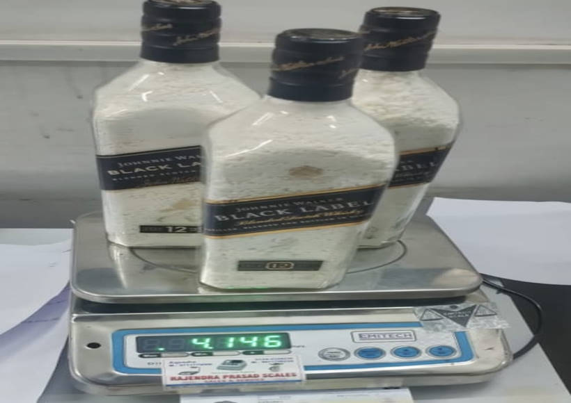 एक सीमा शुल्क अधिकारी ने कहा, उसके सामान की जांच के दौरान हमने व्हिस्की की तीन बोतलों में सफेद रंग का पाउडर पाया, जो कोकीन थी। बरामद नशीले पदार्थ का कुल वजन 4.145 किलोग्राम था। उसकी कीमत 38.05 करोड़ रुपये आंकी गई है।