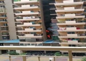 ग्रेटर नोएडा, 26 अप्रैल (युआईटीवी/आईएएनएस)- ग्रेटर नोएडा के बिसरख थाना इलाके में बनी गौर सिटी सोसाइटी के 14थ एवेन्यू में आज भीषण आग लग गई। आग की लपटें इतनी ज्यादा तेज थीं कि एक फ्लोर से दूसरे फ्लोर तक पहुंच रही थीं। आग की इस घटना से सोसाइटी के लोगों में दहशत और अफरातफरी का माहौल बन गया था। आनन-फानन में फायर ब्रिगेड को इस आग लगने की सूचना दी गई। जब तक मौके पर फायर ब्रिगेड की टीम पहुंचती तब तक आसपास के रहने वाले लोगों और मेंटेनेंस डिपार्टमेंट ने आग पर काबू पाने का प्रयास किया।
