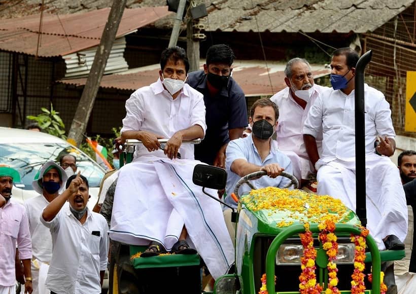 राहुल गांधी ट्रैक्टर चलाते हुए देखे गए और उनकी बाईं और दाईं ओर स्थानीय कांग्रेस विधायक आई.सी. बालाकृष्णन और कांग्रेस महासचिव के.सी. वेणुगोपाल बैठे थे।