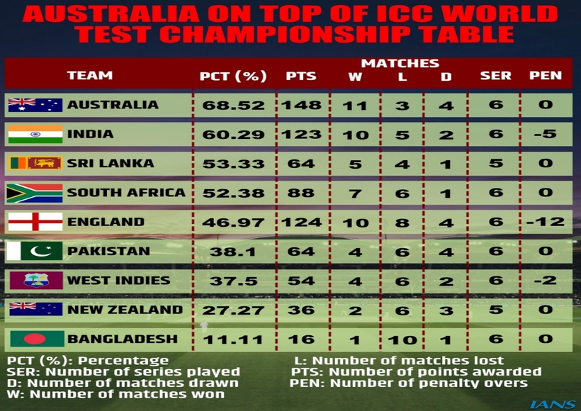 इंदौर में जीत ने ऑस्ट्रेलिया को उनके संभावित डब्ल्यूटीसी अंकों में से प्रभावशाली 68.52 अंक हासिल करने में मदद की है और इसका मतलब है कि वे अहमदाबाद में भारत के खिलाफ चल रही श्रृंखला के अंतिम टेस्ट में परिणाम की परवाह किए बिना तालिका में पहले स्थान पर रहेंगे।
