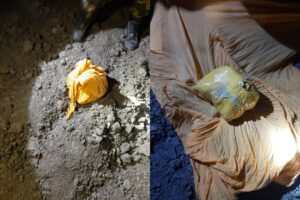 पूरे गांव को घेर लिया गया। बीएसएफ और पुलिस द्वारा एक संयुक्त तलाशी ली गई और तलाशी के दौरान दो घरों के बीच के खाली स्थान पर पीले चिपकने वाले टेप से कसकर लपेटा गया एक पैकेट मिला जिस पर लोहे का एक छल्ला लगा था, जिसे ड्रोन द्वारा ले जाया जा सकता था।