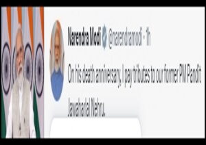 नई दिल्ली, 27 मई (युआईटीवी/आईएएनएस)- प्रधानमंत्री नरेंद्र मोदी ने आजाद भारत के पहले प्रधानमंत्री जवाहर लाल नेहरू की पुण्यतिथि पर उन्हें श्रद्धांजलि दी है। प्रधानमंत्री मोदी ने श्रद्धांजलि अर्पित करते हुए ट्वीट कर कहा, मैं हमारे पूर्व प्रधानमंत्री पंडित जवाहरलाल नेहरू को उनकी पुण्यतिथि पर श्रद्धांजलि देता हूं। स्वतंत्रता सेनानी और देश के पहले प्रधानमंत्री रहे जवाहर लाल नेहरू का जन्म 14 नवंबर 1889 को इलाहाबाद ( जिसे अब प्रयागराज के नाम से जाना जाता है ) में हुआ था।
