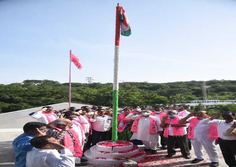 टीआरएस महासचिव के. केशव राव ने पार्टी मुख्यालय तेलंगाना भवन में राष्ट्रीय ध्वज फहराकर समारोह का नेतृत्व किया।