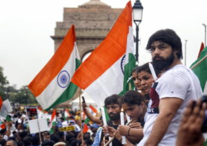प्रदर्शनकारियों ने राष्ट्रीय ध्वज लेकर संसद भवन के पास, इंडिया गेट तक मार्च किया उनके साथ बड़ी संख्या में पुलिस तैनात थी।