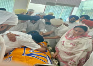 ‘शबद कीर्तन’ के बीच, फूलों से सजे ट्रैक्टर-ट्रेलर में रखे उनके पाíथव शरीर को अंतिम संस्कार के लिए लाया गया।