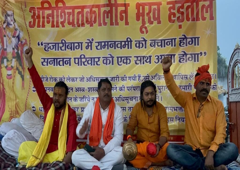 इधर इसी मुद्दे पर दर्जन भर लोगों का जत्था सोमवार को हजारीबाग से पैदल चलकर इस मुद्दे पर अपनी बात सरकार तक पहुंचाने के लिए रांची पहुंचा। जिला प्रशासन के आदेश के विरोध में चार दिनों से अनशन पर बैठे हिंदू प्रचारक अजय सिंह की तबीयत बिगड़ गई। प्रशासन ने उन्हें हॉस्पिटल में दाखिल कराने की कोशिश की, लेकिन उन्हें अनशन स्थल से हिलने से इनकार कर दिया। इसके बाद चिकित्सकों की टीम भेजकर उनके स्वास्थ्य की जांच कराई गई और दवाइयां दी गईं। अजय सिंह के अलावा अमन और बप्पी उर्फ करण भी इसी मांग के साथ अनशन कर रहे हैं। अनशन कर रहे लोगों से कई नेताओं ने भी मुलाकात की। सदर विधायक मनीष जायसवाल धरना स्थल पर पहुंचे और अनशन पर बैठे लोगों को हालचाल जाना।