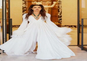 इन फोटोज में एक्ट्रेस को ऑल-व्हाइट थाई-हाई स्लिट गाउन पहने देखा जा सकता है, जिसमें प्लंजिंग नेकलाइन और व्हाइट हील्स हैं। उन्होंने अपने बालों को दो पिगटेल्स में बांधा और एक नेकलेस के साथ अपने लुक को पूरा किया।