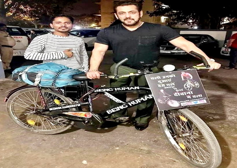 मुंबई, 3 जनवरी (युआईटीवी/आईएएनएस)- बॉलीवुड एक्टर सलमान खान ने हाल ही में अपना जन्मदिन बड़े ही धूमधाम से मनाया, फैंस ने भी एक्टर को जन्मदिन की बधाई दी और कई लोग अपने पंसदीदा अभिनेता से खास मौके पर मिलने भी गए। ऐसे में सुपरस्टार से एक उनका फैन जबलपुर, मध्यप्रदेश से 1100 किमी की यात्रा साइकिल से तय कर मुंबई मिलने आया। इस व्यक्ति से अभिनेता काफी खुश हुए। सोशल मीडिया पर काफी तेजी से एक्टर की फैन के साथ वाली तस्वीर वायरल हो रही है। फैन की साइकिल पर एक बोर्ड है जिस पर लिखा है, “चलो उनको दुआएं देते चलें। जबलपुर से मुंबई, दीवाना मैं चला।”