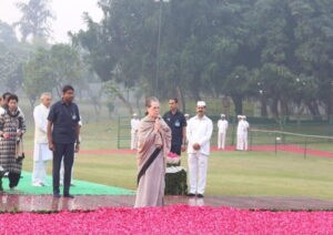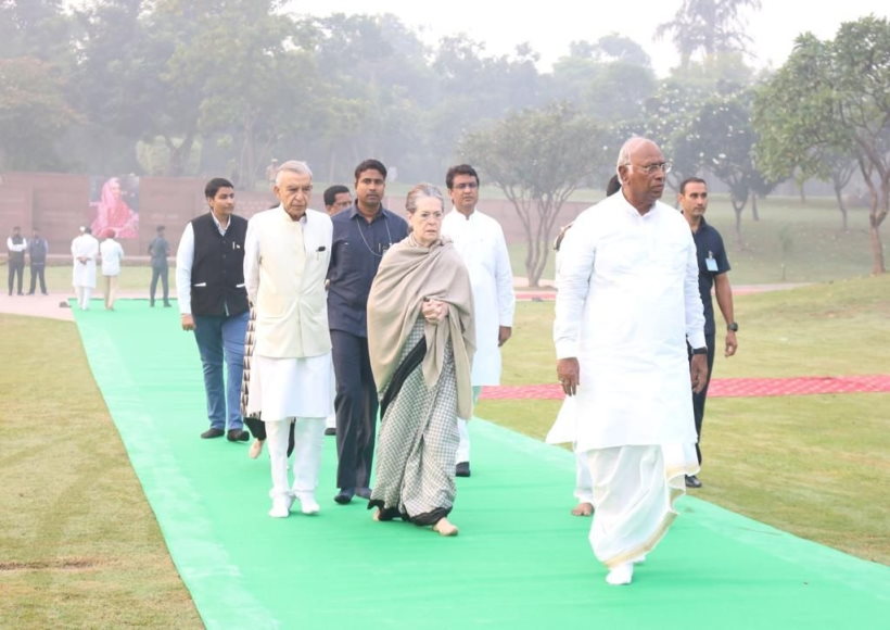 खड़गे और सोनिया गांधी ने इंदिरा गांधी स्मारक पर भी उन्हें श्रद्धांजलि अर्पित की।