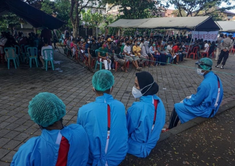इंडोनेशिया में स्वास्थ्य कर्मियों को दूसरा कोविड बूस्टर देने का काम शुरू