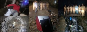 मुठभेड़ के दौरान अभियुक्त मिथुन उर्फ मृत्युंजय कुमार पुत्र कामेश्वर गोली लगने से घायल हो गया है। अभियुक्तों के कब्जे से एक फर्जी नम्बर प्लेट लगी चोरी की स्पलैंडर मो.सा., 2 चोरी के लैपटॉप, 2 तमंचे 315 बोर, 2 खोखा कारतूस व 2 जिंदा कारतूस बरामद किए गए हैं।