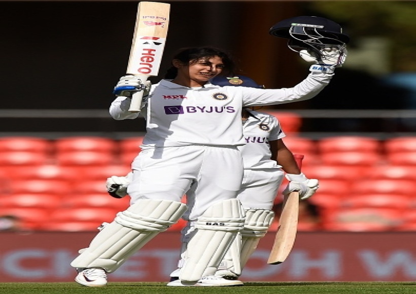 इससे पहले, भारतीय महिला टीम ने आज एक विकेट पर 132 रन से आगे खेलना शुरू किया और मंधाना 80 और पूनम राउत ने 16 रन से पारी आगे बढ़ाई। दोनों बल्लेबाजों ने शानदार शुरूआत की और मंधाना ने शतक जड़ा। इसके साथ ही मंधाना ऑस्ट्रेलिया में टेस्ट शतक जड़ने वाली पहली भारतीय महिला बल्लेबाज बनीं।